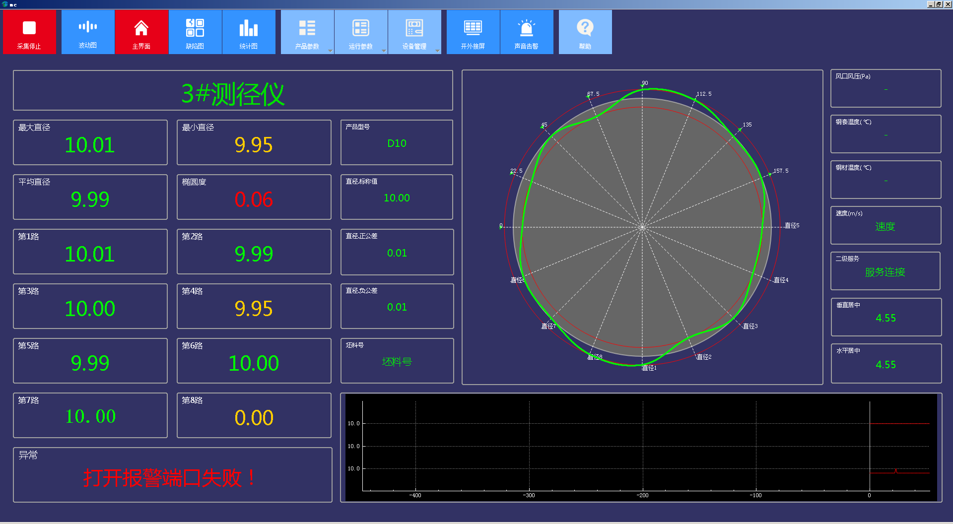 在主界面,除了以不同顏色顯示數據之外,還支持以趨勢圖、截面圖的形式來顯示待測物的實時數據,從而方便用戶更直觀的了解測量數據的偏差。